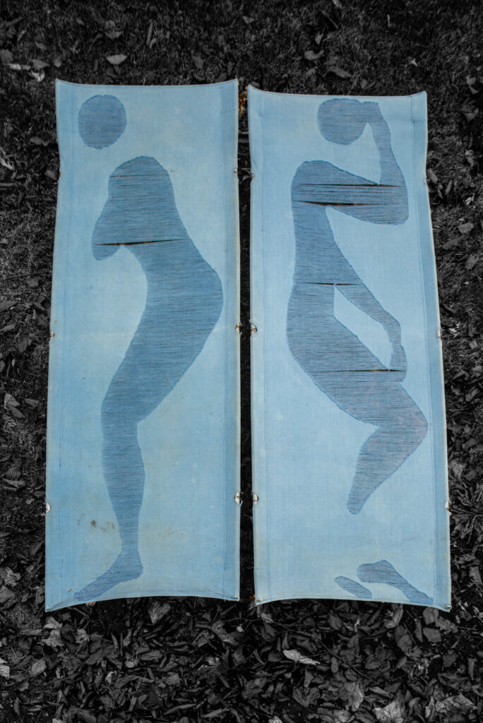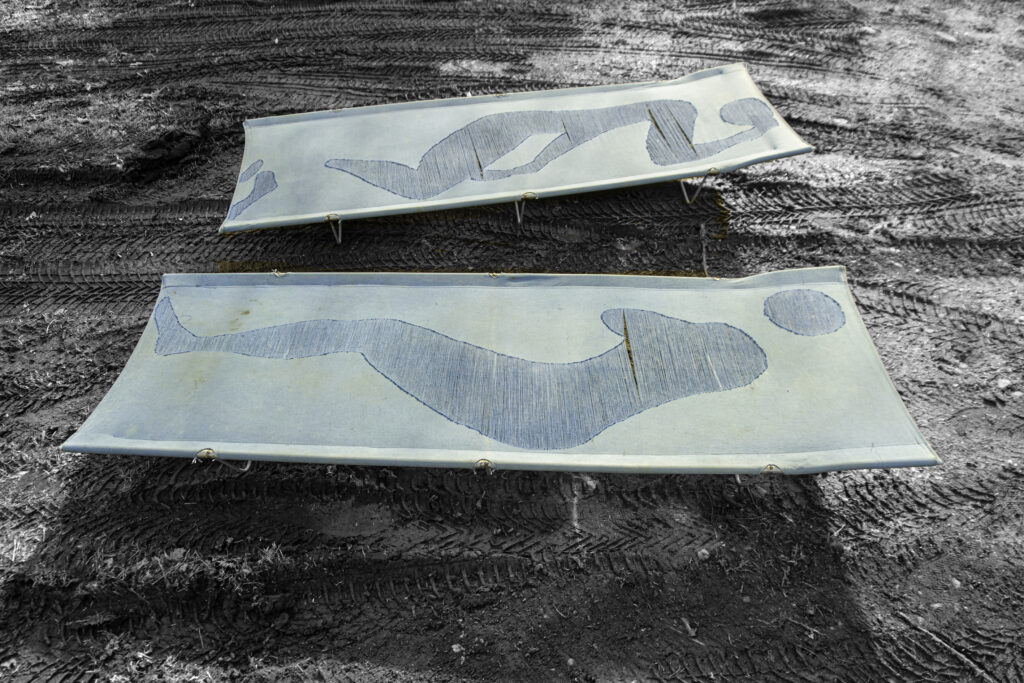 Installation mit zwei Steckbetten (Firma Pouch, DDR), aufgelöste Liegeflächen,